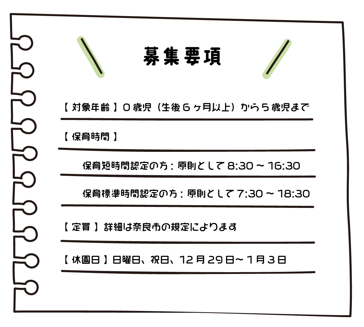 春日よつば保育園の募集要項は、奈良市の規定に準拠しています。